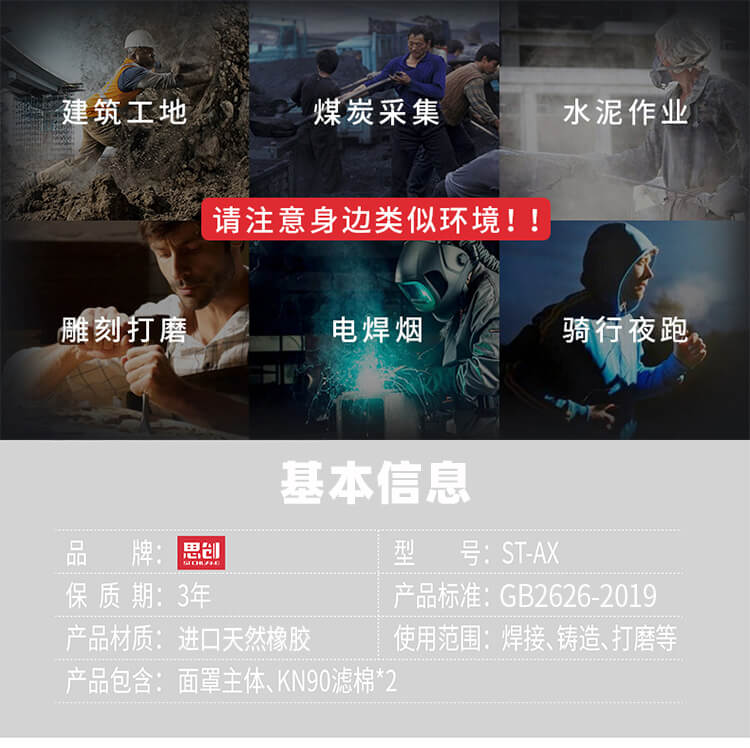 >1/4臉部大小面罩,僅100g重,適合高強度勞動者長期佩戴