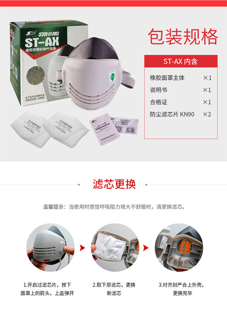 >每套內(nèi)含一個ST-AX半面罩、兩片AGX.1KN90濾芯